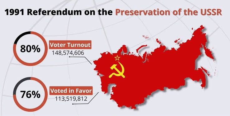On 17 March 1991, over 148 million Soviet citizens voted in a national referendum on whether to preserve the Soviet Union. In those republics where it was held, 113 million—or 77.85 per cent—voted in favour. At the moment of victory of the counter-revolution, a clear majority supported the continuation of the Soviet Union.
