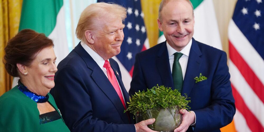 While America’s imperial master was absorbing the news that a one-time devotee (along with several other leading MAGA supporters) was causing a headache for the regime, his ego was being massaged by a kowtowing Micheál Martin, sliding in to present Trump with a bowl of shamrock.